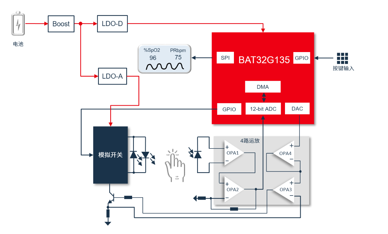 血氧仪主要测量指标分别为脉率、血氧饱和度,血氧饱和度是临床医疗上重要的基础数据之一。中微半导体基于高...
